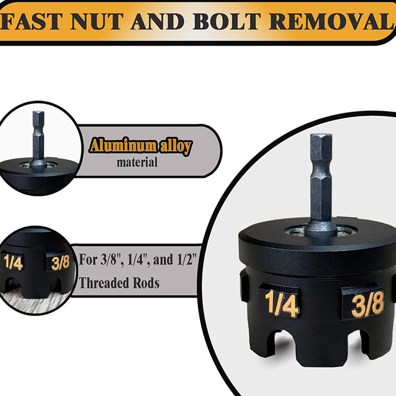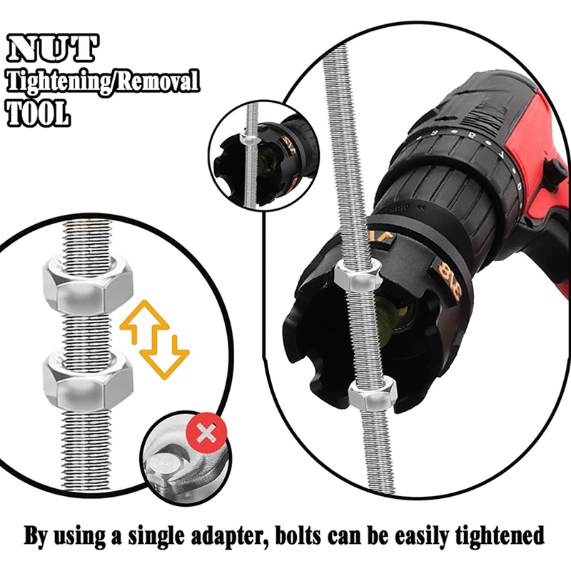 POWER DRILL-EL VALÓ EGYÜTTMŰKÖDÉS: Zökkenőmentesen csatlakozik a szabványos power drill-okhoz, gyors és nagy nyomatékú anya-elszereléshez. A fárasztó kézi munkát gyors műveletté alakítja – csak csatlakoztassa, igázítsa és hagyja, hogy a drill végezze a munkát. Jelentősen csökkenti a fizikai erőfeszítést és növeli a hatékonyságot ismétlődő vagy szorosan illeszkedő anyák esetén.
