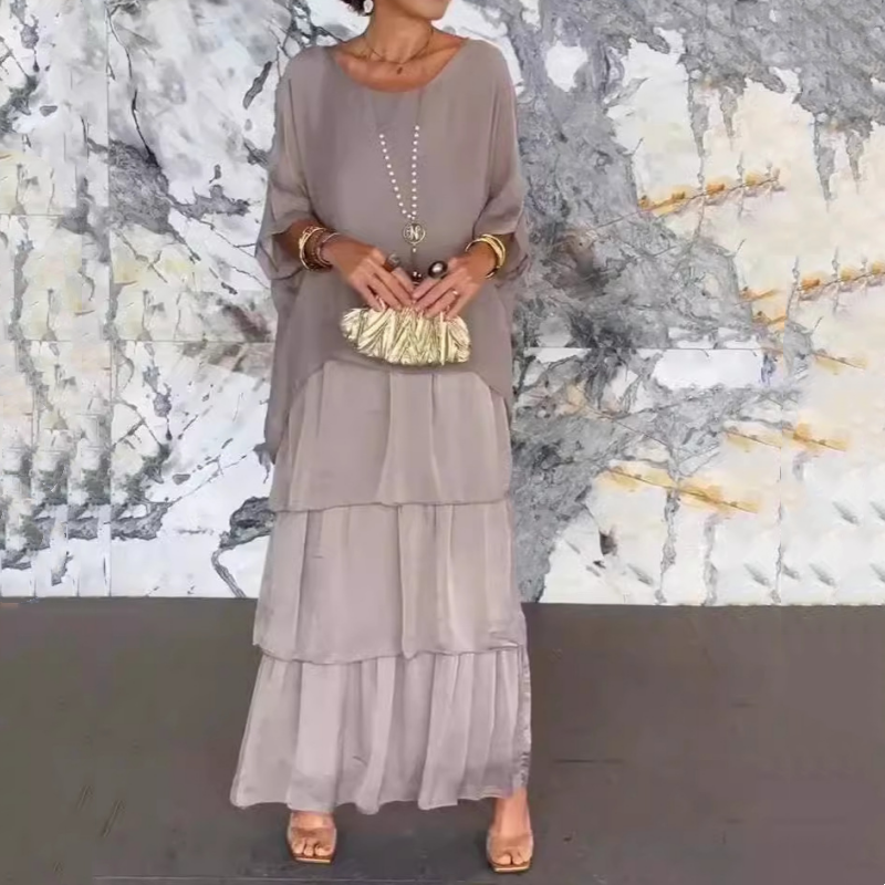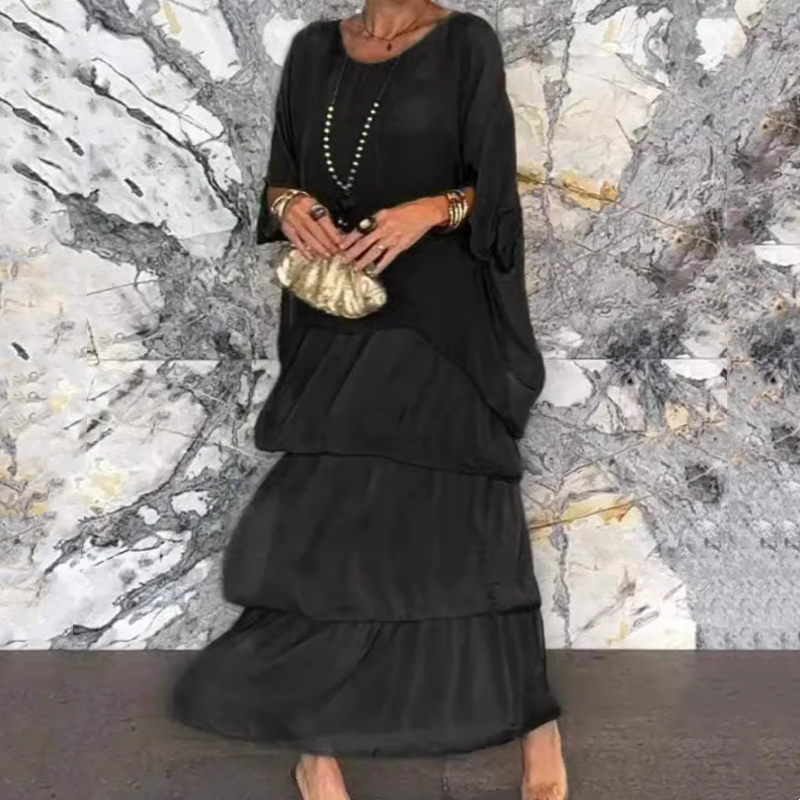 🔥[S-4XL]👗Elegáns emeletes fodros sifon Maxi ruha🌞❤️