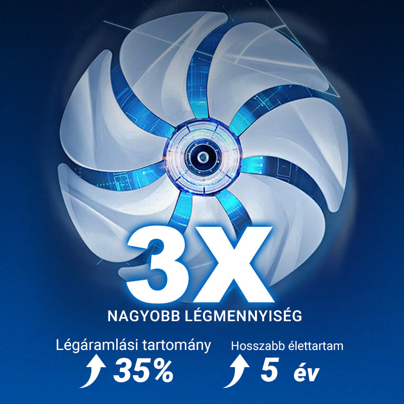 * Megsűrűsödött pengék: Hét megvastagított lapát erősebb és egyenletesebb légmennyiséget biztosít, nem könnyű deformálódni. Stabilan és rezgésmentesen működik, nagy légmennyiséget biztosít, miközben csökkenti a zajt.