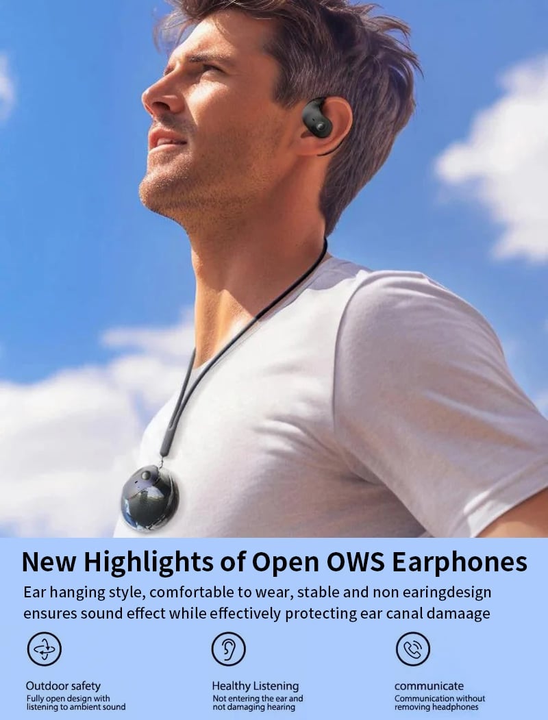 ✨Nyitott kialakítás: A BT fülhallgató nyitott kialakítású, így a fül szabadon lélegezhet. A nem tolakodó kialakítás hatékonyan védi a hallójáratot a sérülésektől, miközben biztosítja a hangminőséget.Nagyon alkalmas zenehallgatáshoz, videónézéshez és játékhoz, más élményt nyújt.