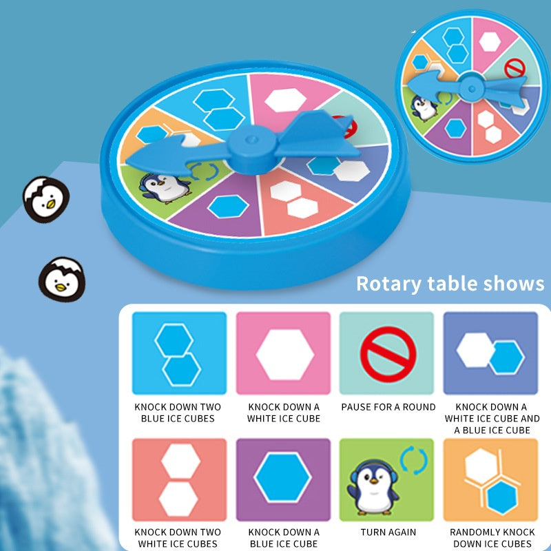 KÉZFEJLESZTŐ GYAKORLAT – Ez a játék elősegíti a finom motorikus képességek fejlődését azáltal, hogy ösztönzi a gyerekeket a kéz és a csukló mozgatására, elősegítve ezzel a kéz fejlődését. Amint a gyerekek forgatják a mutatót és leütik a jégtömböket, szórakoztató módon javítják koordinációjukat és ügyességüket.