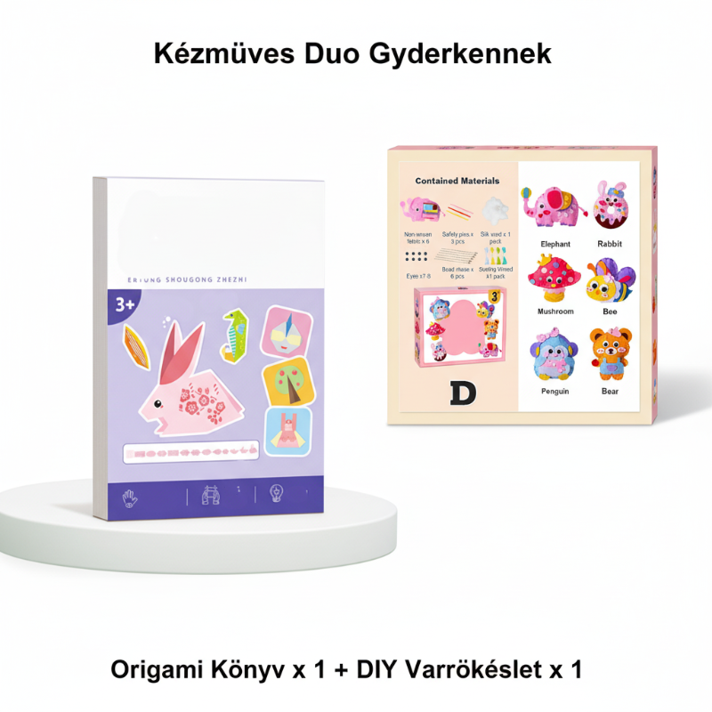 30 egyedi minta (állatok, repülőgépek, ajándékok), vastag papír a könnyű hajtogatáshoz, lépésről lépésre bemutatott utasítások + videó. Fokozatos nehézségi szintek – ideális 3 évesnél idősebb gyermekek számára, fejleszti a koncentrációt és a koordinációt!