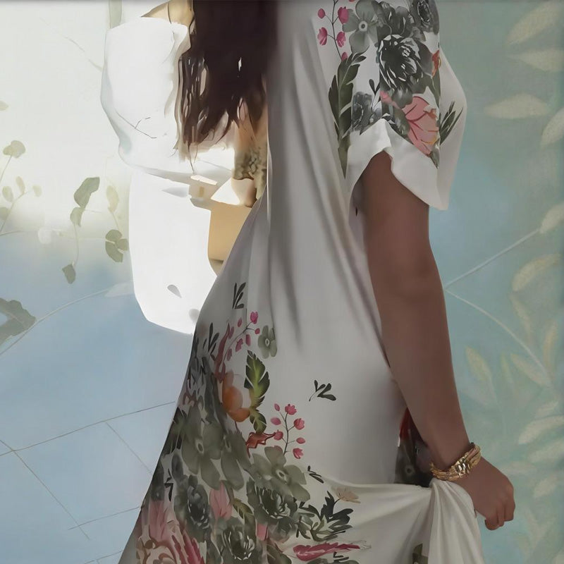 🌸 Könnyű, rövid ujjú, virágmintás maxiruha【M-3XL】