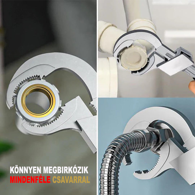Állítható nyílás, mindenféle csatlakozás, csőidomok, csavarok szorosan rögzíthetők.