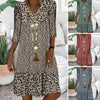 🌾NƑi divat nyomtatott nƑi közĂ©psƑ ujjĂș V-nyakĂș ruha