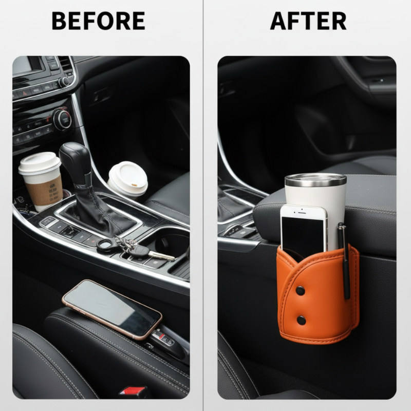 KAPCSOLD FEL, TEDD BE, SZERESD – Azonnal fejleszd autód tárolási lehetőségeit. Ez az okos, felkapcsolható pohártartó másodpercek alatt rögzíthető az ajtódhoz, ülésedhez vagy a középkonzolhoz – szerszám nélkül, minden macera nélkül. Tartsd italodat, telefonodat vagy kulcsaidat pont ott, ahol szükséged van rájuk, mindig kéznél, útközben is.