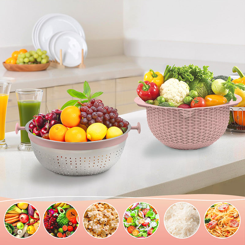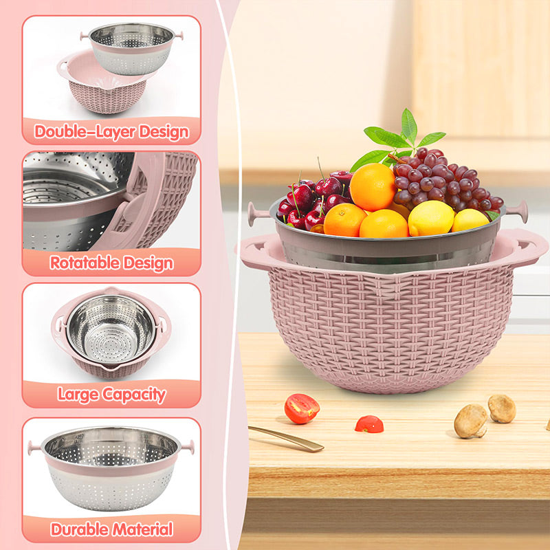 Kivehető 2 RÉTEGES SZŰRŐKOSÁR – Tartalmaz egy két részből álló, könnyen szétválasztható szűrőt és kosarat, amely lehetővé teszi nagyobb mennyiségű zöldség és gyümölcs kényelmes mosását és lecsepegtetését.