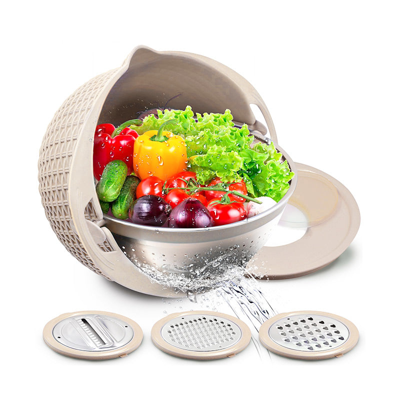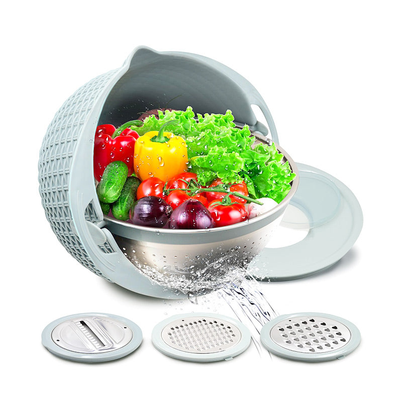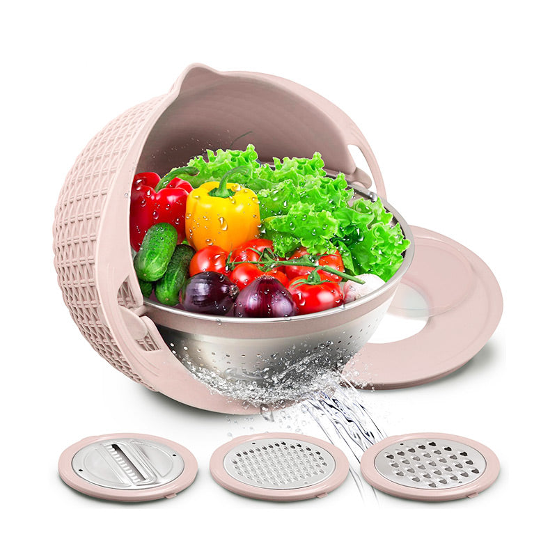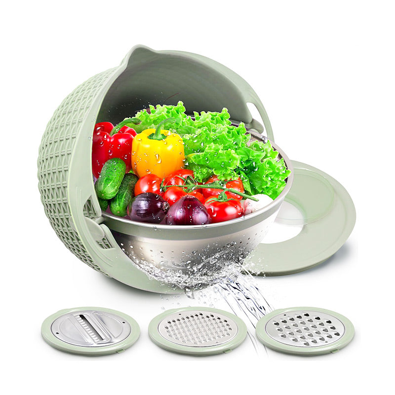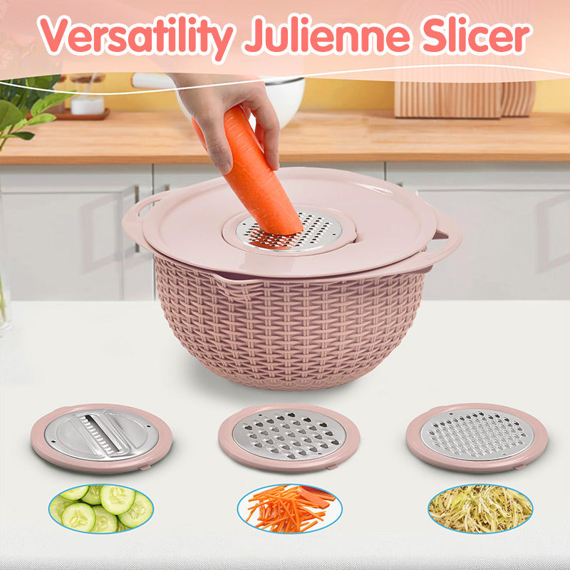 TÖBBFÉLE FUNKCIONALITÁS – Ez a multifunkcionális konyhai eszköz egy tartós rozsdamentes acél szűrőt és egy sokoldalú szeletelő készletet ötvöz, így számos felhasználási lehetőséget egyesít egyetlen praktikus és hatékony készülékben.