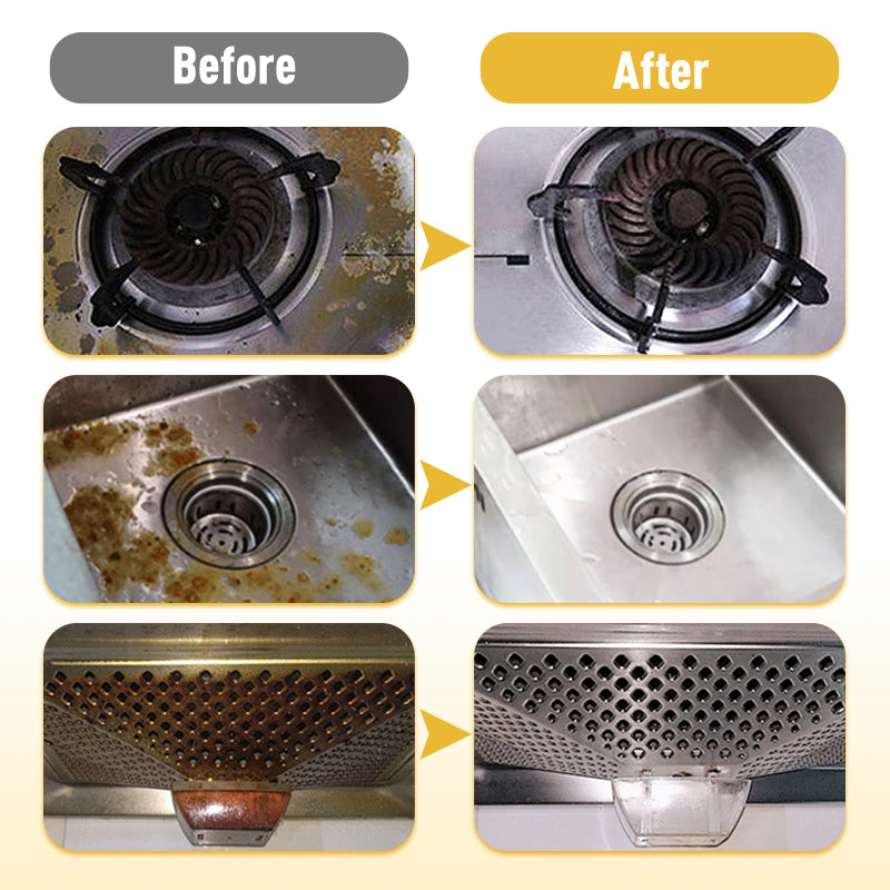 KONYHAI ZSÍRTALANÍTÓ BAJNOK: Kifejezetten a legmakacsabb zsírfoltok eltávolítására tervezett, ez az erőteljes spray könnyedén lebontja a konyhai szagelszívókon, tűzhelyeken és mosogatókon lerakódott makacs zsírt és koszt, anélkül, hogy dörzsölni vagy szétszerelni kellene.