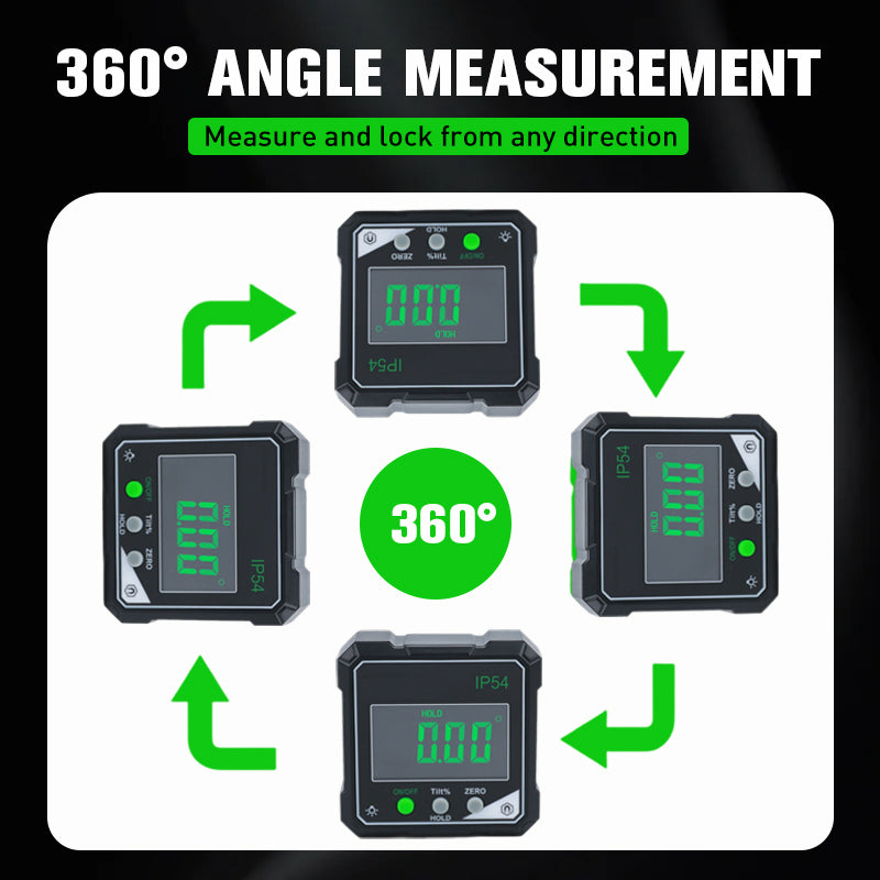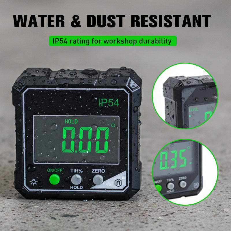 FOKOZOTT KÖRNYEZETVÉDELEM: IP54 víz- és porállósági besorolással rendelkező szögmérő, amely műhelyi szennyeződések és enyhe nedvesség ellen is ellenálló, így ideális beltéri használatra vagy nehéz kültéri körülmények között.
