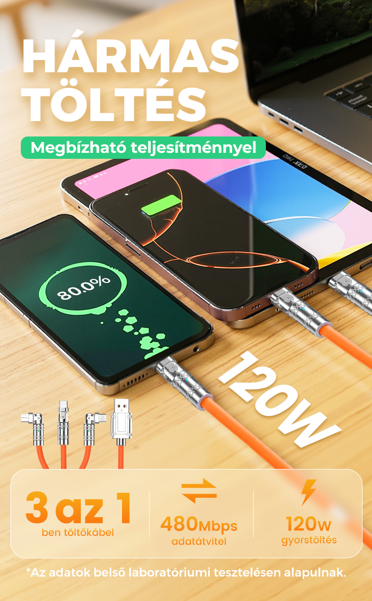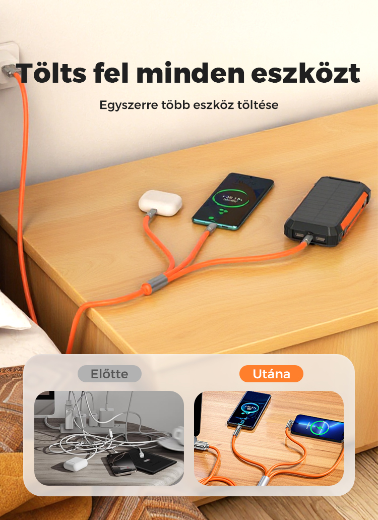 3 az 1-ben forgatható töltőkábel