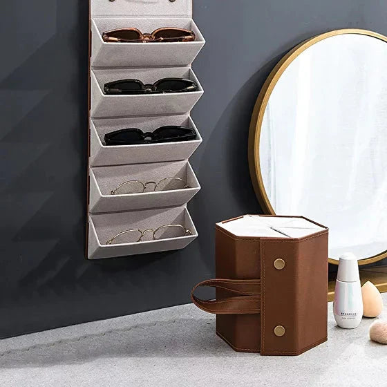 Lehetővé teszi 2-6 pár napszemüveg és szemüveg tárolását egy egyedi kialakítású, kényelmes tokban. Felakaszthatod a gardróbszekrénybe vagy a komódra helyezheted.