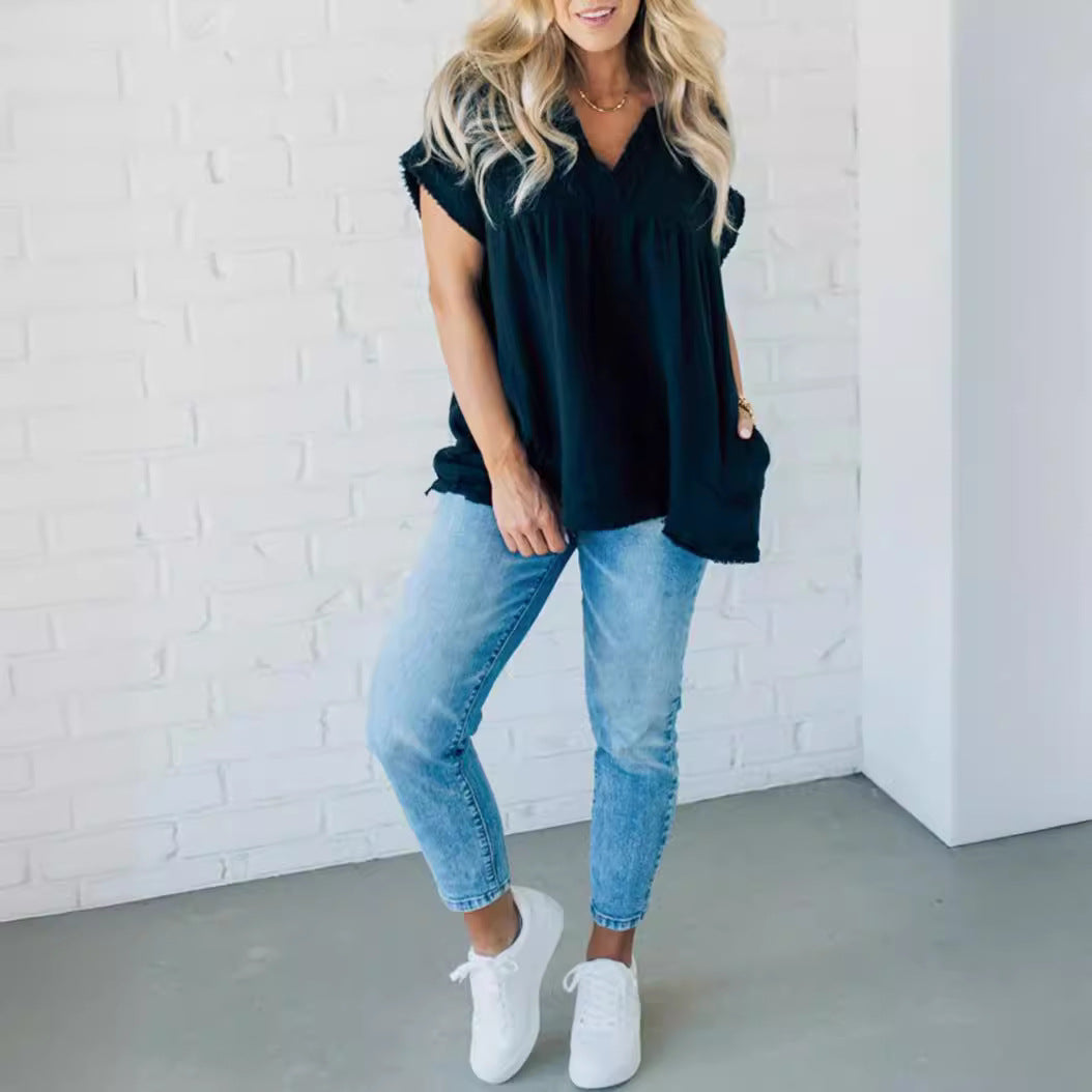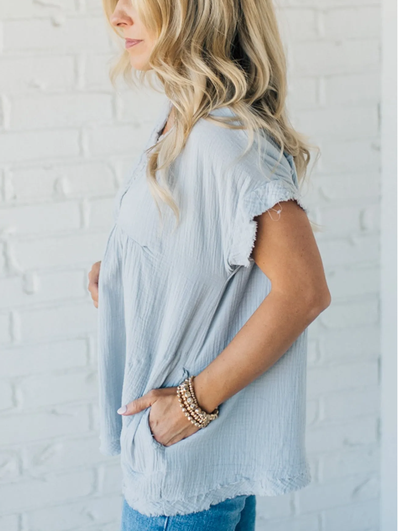 🥳Könnyű, gumis felső, mindkét oldalán zsebbel, és nyers szélű, egyenes szegéllyel! 💖Ez a kényelmes felső felöltöztethető farmerrel és bakancsokkal, vagy dobd fel leggingsszel és papuccsal a tökéletes „get-things-done” megjelenésért!