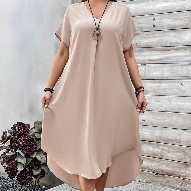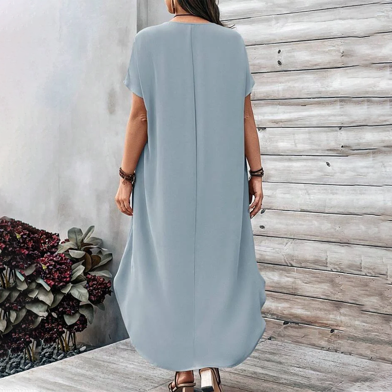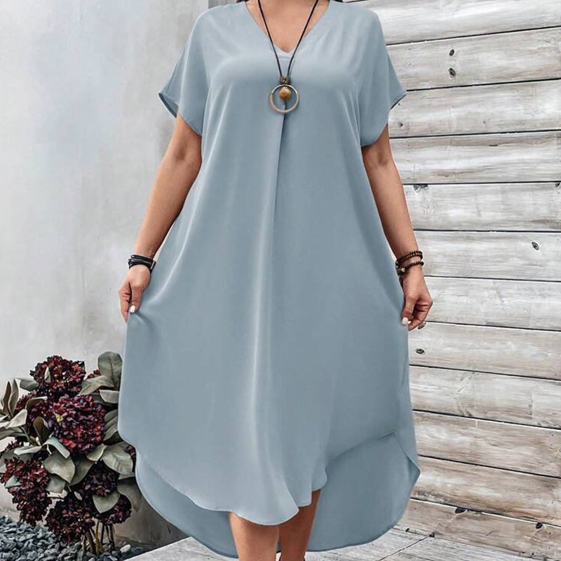 HÍZELŐ LAZA FELÉPÍTÉS – Az egész napos kényelemre tervezett laza sziluett elegánsan terül el, miközben mozgásszabadságot biztosít. Alkalmi kirándulásokhoz vagy heverészéshez tökéletes ez a ruha, így nem tapad meg a testet.