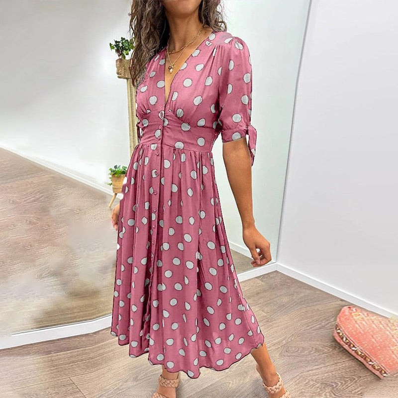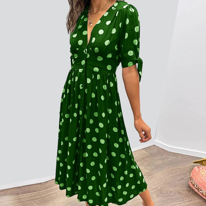 1 * Női nyári mély V-nyakú pöttyös elegáns ruhák