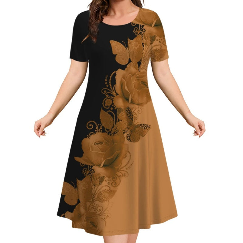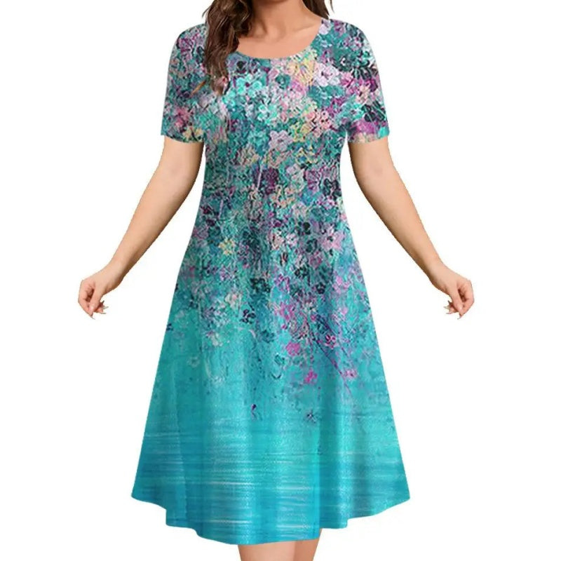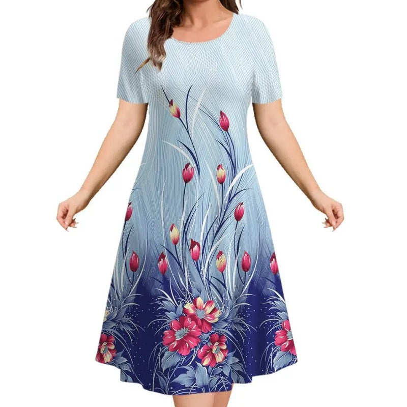 ✨Női nyomtatott mintás, rövidujjú casual ruha